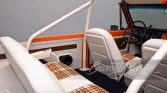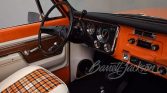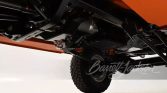 The Roadster Shop RS4 chassis features upgraded 13-inch Baer brakes, oversized sway bar links, triangulated front and rear 4-links, Currie high-pinion axles with 4.56 gears, 20-way adjustable Fox 2.0 coil overs, Fox hydraulic bump stops and a 24-way adjustable Fox steering stabilizer. Dispersing the power through the chassis is a twin-stick Atlas transfer case. A 3-inch fully polished stainless-steel exhaust has been fabricated and completely TIG-welded utilizing V-band clamps and four Magna Flow mufflers. Before marrying the ’72 K5 body to the chassis, the body was completely sandblasted, metal worked, and body worked and shows the result of a concours-worthy refinish shining bright in Omaha Orange.