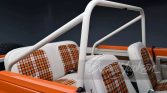 This K5 rides on 17-inch KMC bead lock wheels wrapped in 35-inch BFGoodrich tires. Contrasting with the exterior is the Bone White CST Highlander interior, featuring K5 Orange Plaid seat inserts and a TIG-welded OEM-style roll bar.